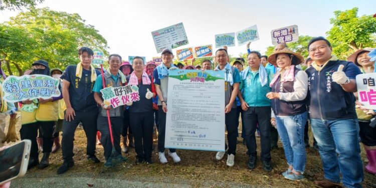 (記者 邱嘉琪 嘉義報導)新港鄉公所積極響應嘉義縣環境保護局推動環境清潔日「村里清潔大作戰」,成功媒合台灣化學纖維股份有限公司新港廠(台化公司)認養鄉內綠地公園,13日由環保局秘書翁逸偉、新港鄉長葉孟龍、台化公司資深經理蔡旭輝、嘉義縣議會林秀琴、陳文忠、黃啟豪等議員、三間村長蕭金修、社區發展協會理事長莊振瑞、總幹事林麗珍分組率隊,動員新港環保志工、台化公司員工及村民等約146位環保志工,進行三角公園周邊環境清潔活動。